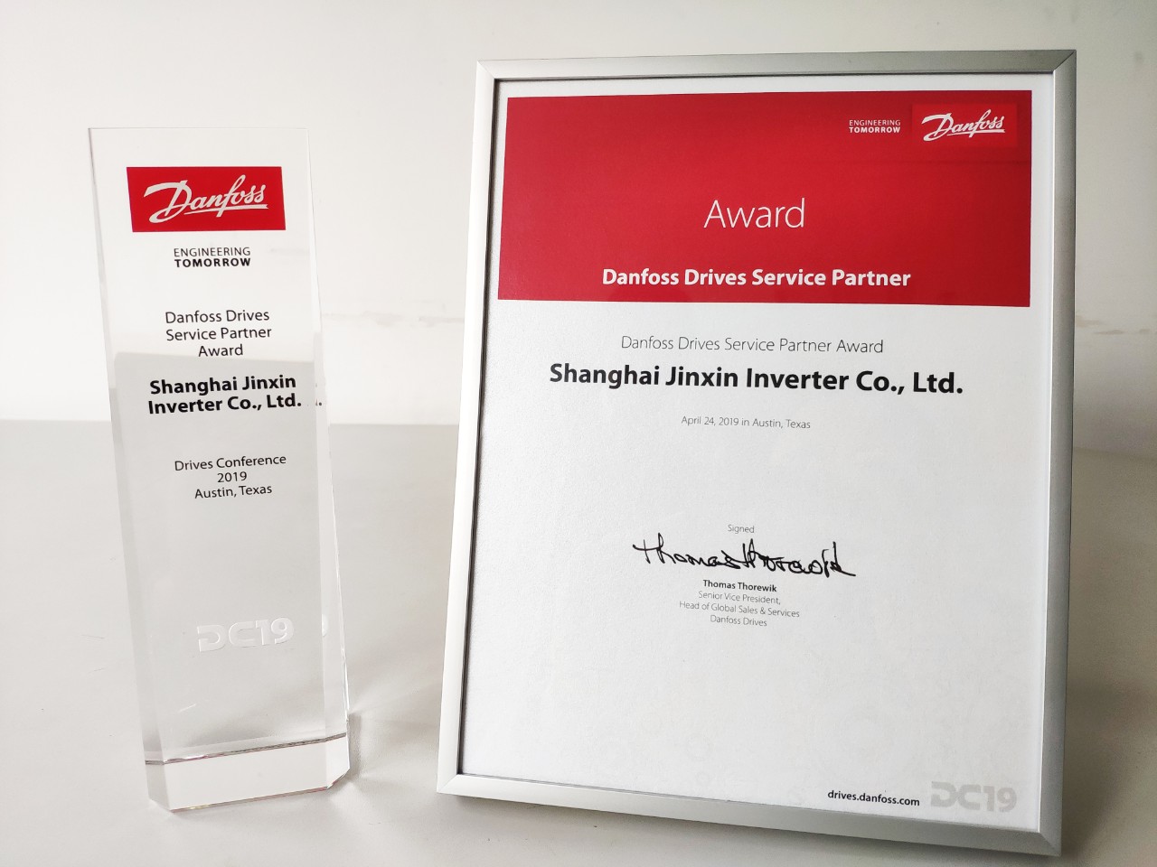 2019年4月24日,“丹佛斯传动会议2019 (DC19)”在美国Texas州,Austin市隆重举行,作为丹佛斯战略合作伙伴,上海榴莲视频导航污下载在线观看变频器有限公司凭借优质的服务水平和业绩,荣获2019年度“全球最佳服务伙伴奖”。