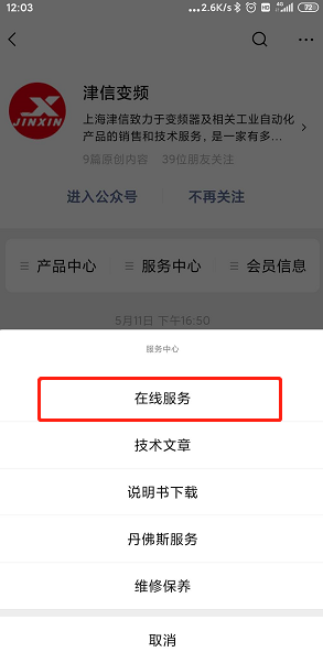 第二步,进入服务中心,可以点击“在线服务”获取及时的在线支持。