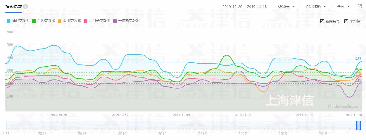 但是,随着互联网大数据的快速发展。使得榴莲视频导航污下载在线观看可以从另一个维度来来了解最被消费者关注的变频器品牌。百度目前是国内用户使用频率最高的搜索引擎,百度搜索指数则从相当程度上代表了当前在互联网上大家最关注的热点。把各家变频器厂商输入百度指数,榴莲视频导航污下载在线观看可以发现,当前在互联网上热度最高的十大变频器品牌排名如下。