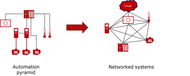 图1:工业4.0意味着从自动化金字塔向网络化系统的过渡