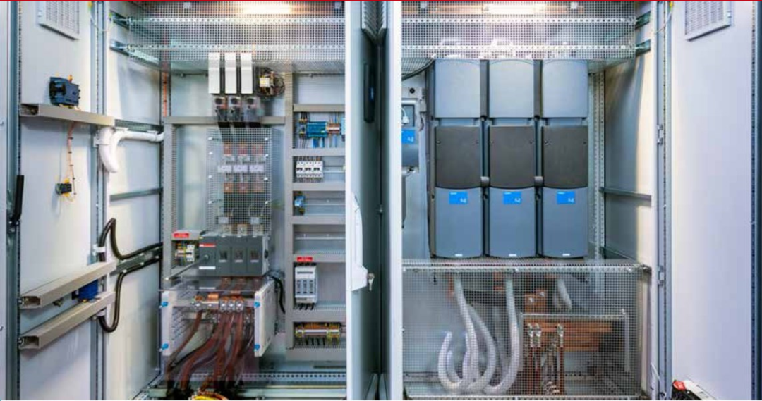 1941年起,Buma泵站与位于东侧的Smeenge泵一起为荷兰东北部圩田的排水发挥着重要的作用。时至今日,Buma泵站依旧是圩田水位管理的重要组成部分。该泵站配备三台大型垂直离心泵,每台泵的最大流速为750立方米/分钟,泵头为5.6米。每台泵由850kW的三相感应电机驱动。当前的泵和690V变速电机由西班牙制造商Alconza出品,自2006年开启使用。随着时间的推移,变频器的故障逐渐增多,甚至出现备件难以获得的情况。为了确保泵的持续可用性,2018年去水务局决定对现有的变频器进行更换。