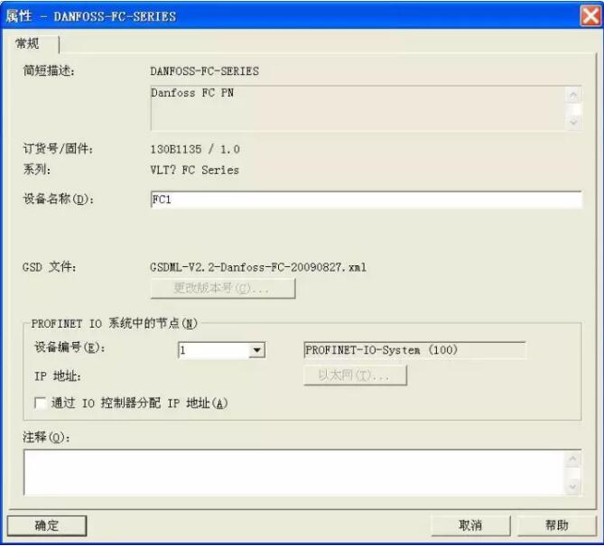 丹佛斯 FC300 系列变频器 ProfiNet GSD 文件名为“GSDML-V2.2-Danfoss-FC-20090827. xml”(可从丹佛斯官网下载)。