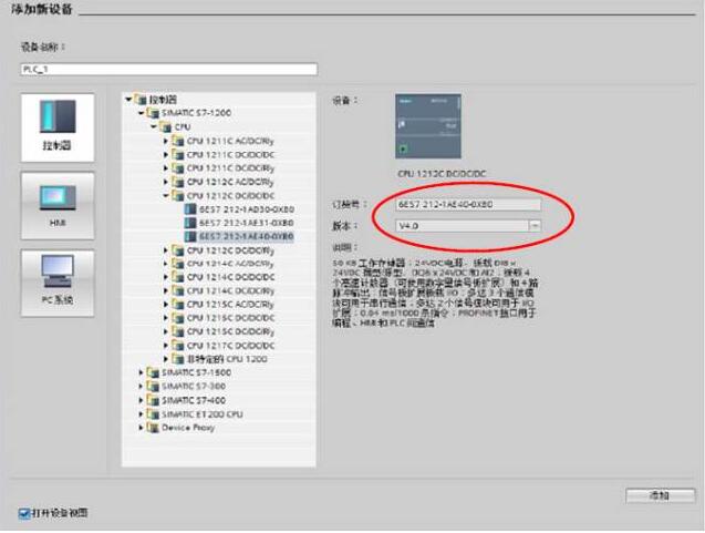 四、添加 PLC 主机,示例中使用的是 S7-1200 (6ES7 212-1AE40-0XB0):