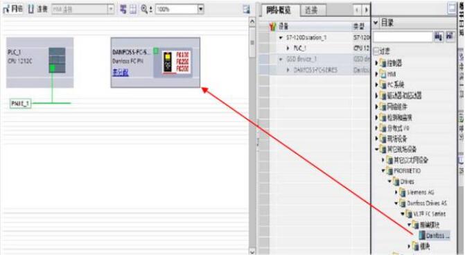 七、:配置榴莲APP官方下载进入网站(进入‘网络视图’-打开右侧‘硬件目录’-选择‘Danfoss Drives AS-前端模块’-‘Danfoss-FC-SERIES’),如图七所示: