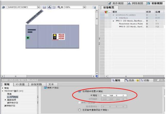 1、当 PLC 硬件配置中变频器 IP 地址为“在项目中设