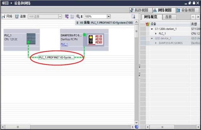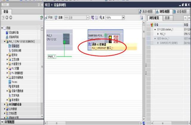 十、网络配置:将榴莲APP官方下载进入网站加入到 ProfiNET 网络总线上,点击‘设备和网络’-‘选 择变频器’-‘选择 I/O 控制器’-‘PLC1_-PROFINET 接口_1’,如图十一所示,配置完成 后,如图十二所示: