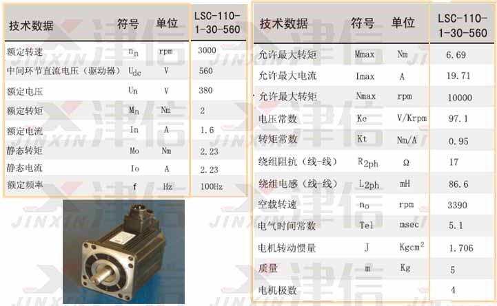 市场上有许多永磁同步电机的供应商,比如LUST、Phase、Lafert、中源等。以LUST永磁同步电机为例(型号:LSC-110-1-30-560),其具体参数如下: