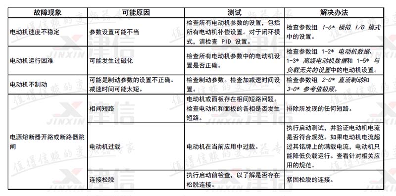 | 16 | 短路 | X | X | 电动机或电动机端子发生短路。 | |