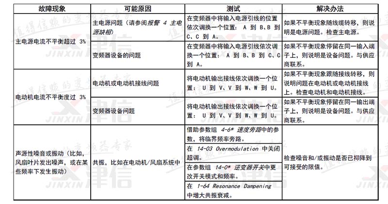 | 3 | 无电动机 | X | 变频器的输出端子上没有连接电动机。 | ||