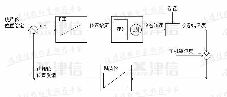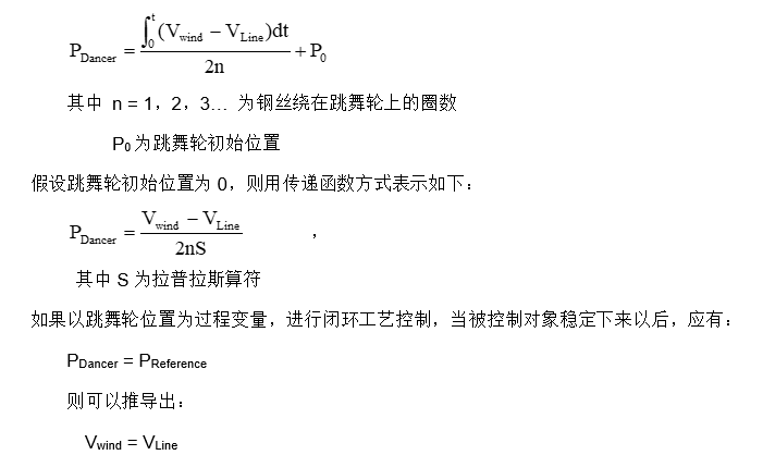 可见收卷线速度同步控制的控制要求,可以转化为跳舞轮位置控制的要求。
