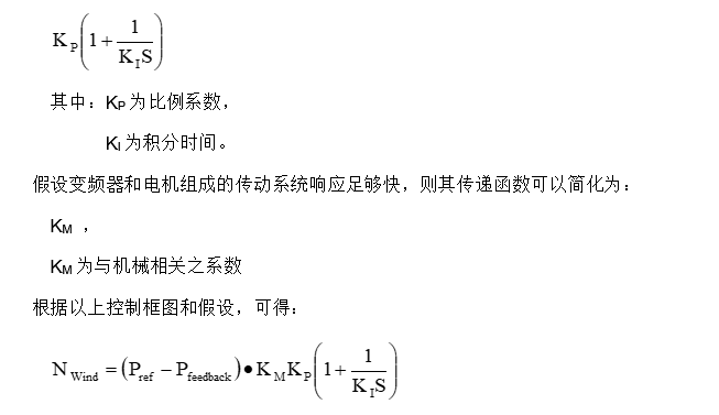 为适当简化方程,假设只用PI调节,忽略微分,则PID调节器的传递函数为: