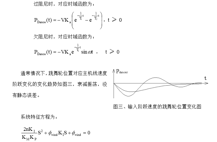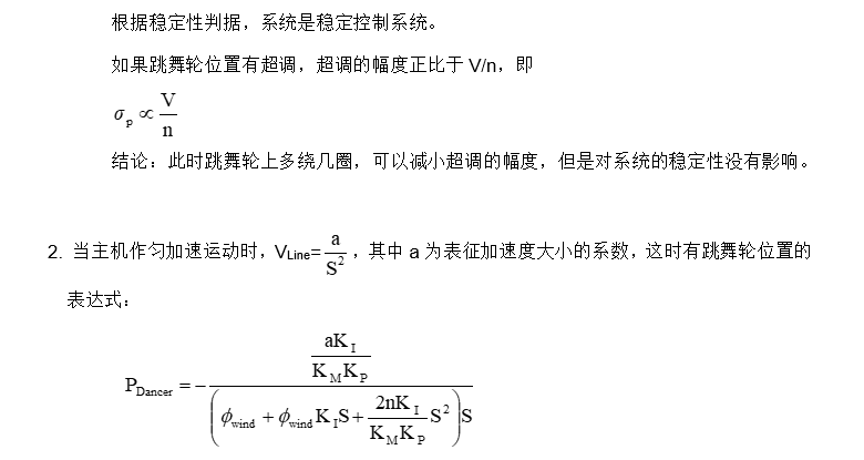 上面的方程表明跳舞轮位置反馈控制等效于以钢帘线的线速度为输入变量的二阶控制系统。下面就主机工作于匀速和匀加速(减速)两种不同的工况分别分析跳舞轮位置控制的控制特性。