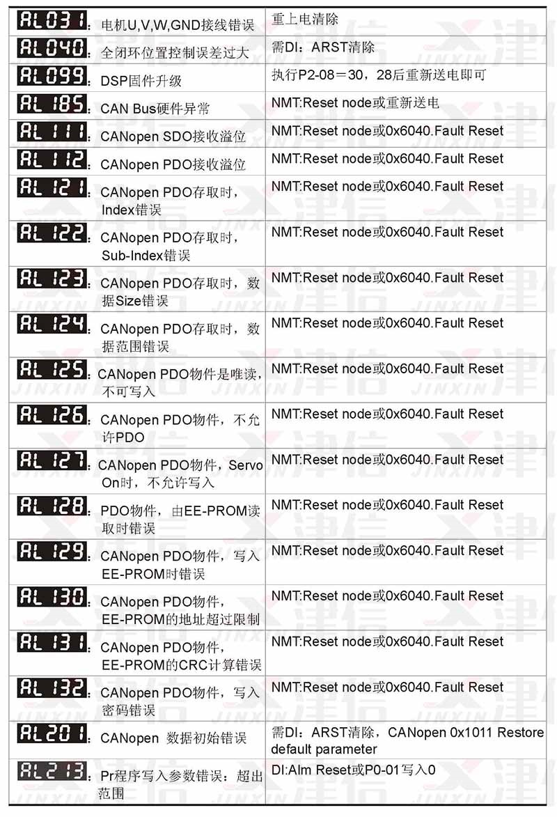 四、AL301,AL302,AL303,AL304,AL305,AL380故障代码