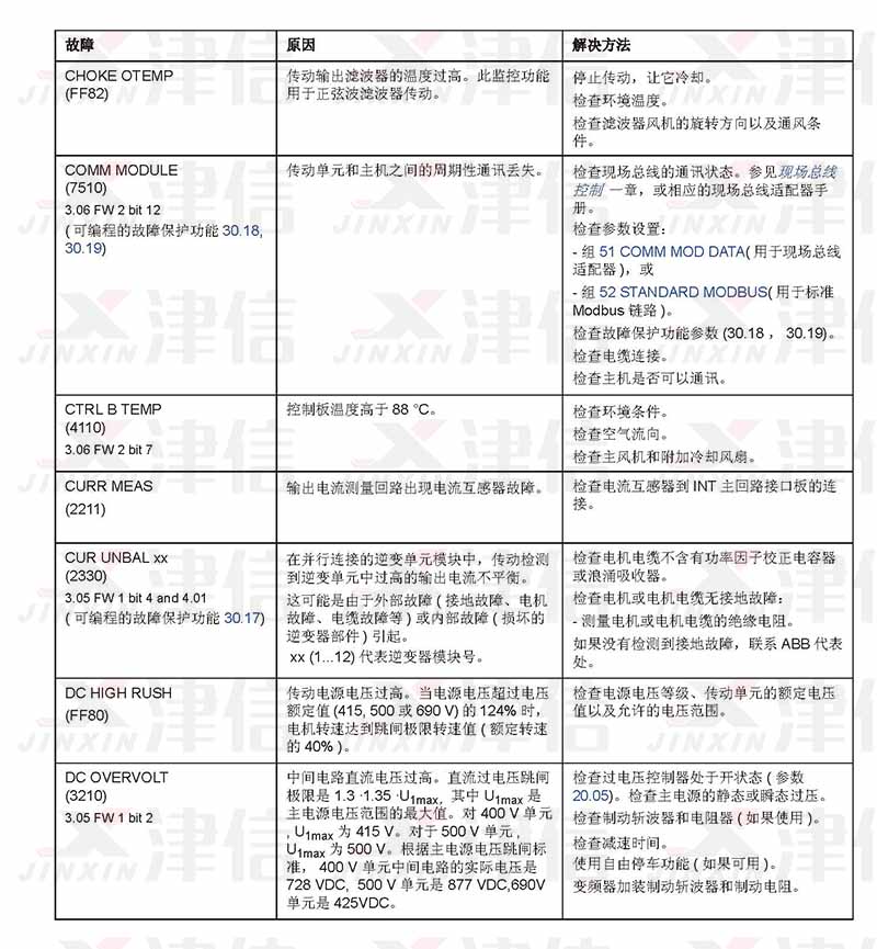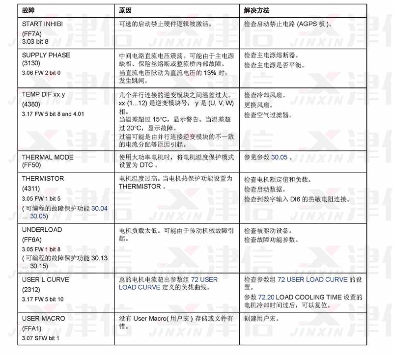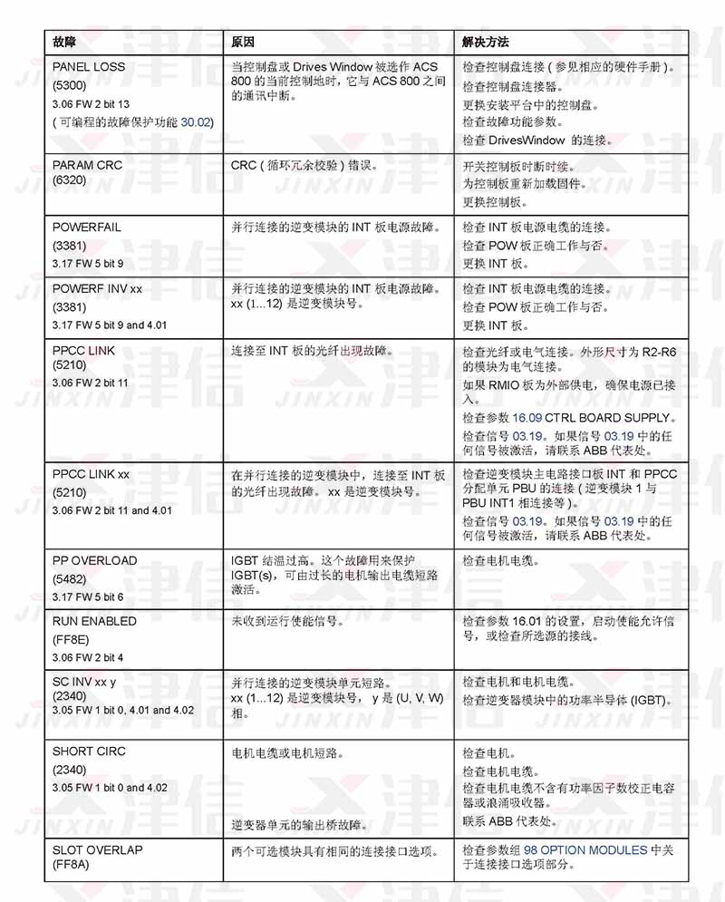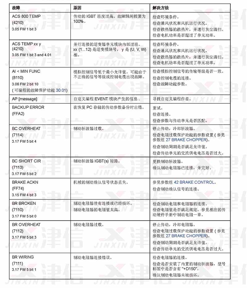 ABB ACS800变频器在出现故障时,在控制盘显示器中会显示警告或故障信息提示信息,大多数警告和故障原因可以利用这些信息识别出来并给以排除。