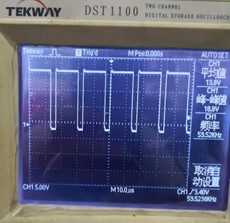 6,查看电源卡开关电源部分的图纸,检查IC2844的前级启动电阻和整流桥均正常,最后检查脉冲变压器供给IC2844的次级供电回路,发现启动电容降容超出15%,判定为损坏,将此电容更换后,再次上电机器显示正常,测量开关管驱动波形正常,原故障修复。以下是2844输出的正常波形。