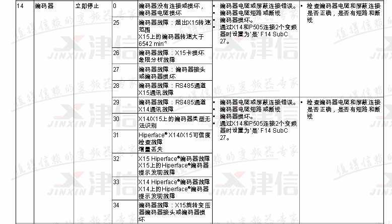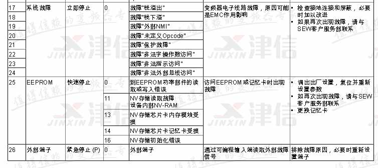 SEW变频器故障代码F17,F18,F19,F20,F21,F22,F23,F24,F25,F26,具体如下: