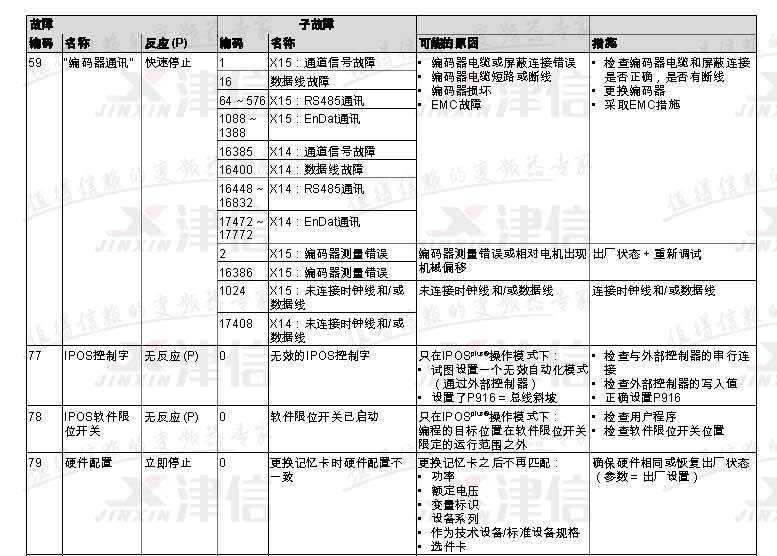 SEW变频器故障代码F59,F77,F78,F79,具体如下: