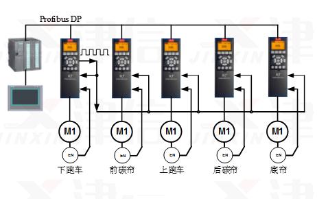 驱动系统的整体结构如图四,每根轴独立按自己的电子凸轮曲线运行,属于典型的分布式控制系统,对主控制器的性能要求,一般的PLC就能胜任。由于每根轴都与主轴保持电子凸轮同步关系,所以总体上可以实现多轴同步的控制需求。其中下跑车运动控制器比较特殊,他具有虚拟主轴脉冲输出的功能,代替主控制器发送主轴脉冲信号。