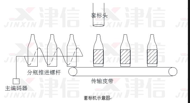 套标机输入侧送瓶使用螺杆推进,螺杆推进起到分瓶作用;输出侧送瓶采用传输皮带,传输皮带的线速度比螺杆高,起到拉开间距的作用。为使套标准确,要求传输皮带的转速与分瓶推进螺杆的转速保持精确的速度比。分瓶推进螺杆上安装主编码器,主编码器信号既用于套标又用于传输皮带的速度控制。传输皮带如果用伺服驱动的话,的确可以做到很精确的速度比控制,但是此处的应用不需要伺服级的精度;传输皮带如果用异度电机驱动的话,必须要在异步电机上加装编码器,采用电子角度同步控制方式才能保证精确的速比控制;原设计使用同步电机加VLT5000变频器的方案,非常简单地解决了高精度同步速比控制的问题,因为同步电机的转速与变频器输出频率成严格正比,而VLT5000变频器输出频率又能与脉冲输入频率保持严格比例关系,结果使传输带的速度与分瓶推进螺杆的转速保持高精度速度比例。