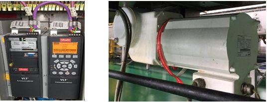 用两台Danfoss OGD电机替换原SSB Duradrive同步电机,用2台FC302驱动器内置MCA114 Profibus-DP通讯卡驱动两台OGD电机,替换原系统的VLT5000变频器。