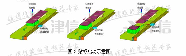 当传送带上的物品碰到“贴标启动传感器”后,凸轮启动,标签轴跟随主轴移动,直到贴标完成,凸轮轴脱离则由“标签定位传感器控制”,如图2所示。